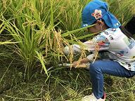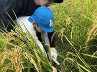 R7.7.26 稲刈りに挑戦!! らいおん組は6月に自分たちが植えた稲の収穫を行いました。 手刈りをするのはほとんどの子が初めてでしたが、 利き手で鎌を持ち、反対での手で稲を掴みながら、 少しずつ刈ることに挑戦しました。だんだんコツをつかんだのか 何度も挑戦する子もいて、最後の方では腰つきも大人のように かっこいい姿で刈れるようになっていました。 |