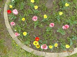| 去年のひこうきぐみさんが植えたチューリップたち 春になったよ〜と咲き始めました きれいに並んでるね |
