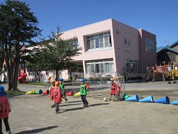 10月2日 北空知サッカー協会の方々が、滝川幼稚園に巡回指導に来てくださいました。