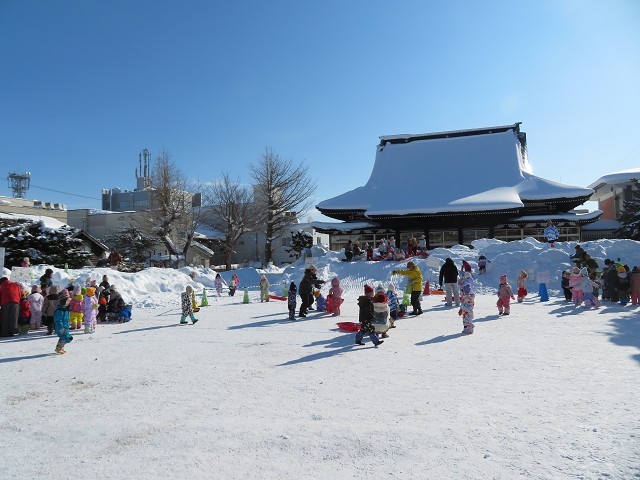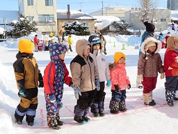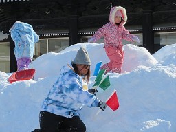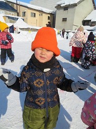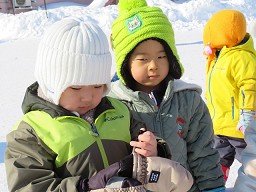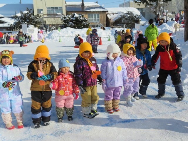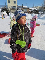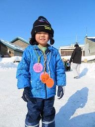 「的あて」「宝さがし」「山登り」「そり滑り」「サッカー」のステーションがあり皆 好きなステーションで 遊んでメダルを もらい雪遊びを楽しんでいました。