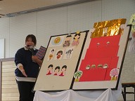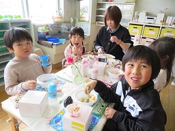 | 3月2日に おひなまつり・3月生まれの誕生会が行われました。 お雛祭りの由来、お雛様に関してのクイズなどを ペープサートで 子ども達と一緒に遊びながら 行いました。 |