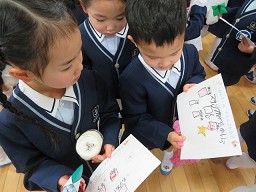 第三小学項訪問 12月17日(水)第三小学校訪問がありました。 1年生の生活科(お店屋さん)で お客さんとして招待され楽しいひと時を過ごしました。 |