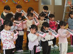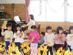 年中さんが 、司会を務め お遊戯や・楽器演奏のプレゼントを年長さんにしました。