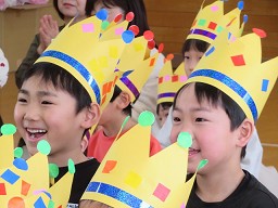 お部屋で会食の後 年中、少が作ったプレゼントを 年長さんが いただき大変喜んでいました。