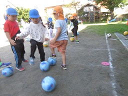 10月2日 北空知サッカー協会の方々が、滝川幼稚園に巡回指導に来てくださいました。
