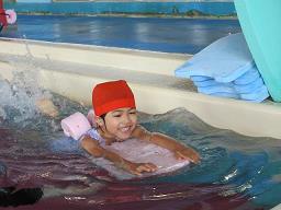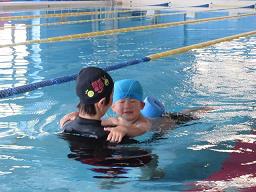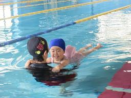 毎月2回のスイミングもがんばっています! 子ども達は少しずつ水に慣れて楽しめているようです。 |