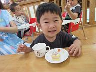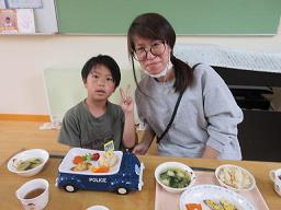 6月の誕生会! 誕生児は保護者の方と一緒にうれしそうに給食を食べていますよ。 |