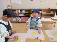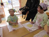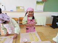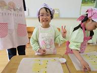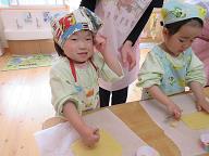 | 毎年楽しみにしているこいのぼりクッキー作り!! 今年はテレビの撮影も入り、少し緊張ぎみの子ども達でしたが、可愛く上手に作ることが出来ていました。オレンジさんは初めてのこいのぼりクッキー作りでしたが、先生の手を借りながらも上手に作る事が出来ていましたよ(*^^*) |