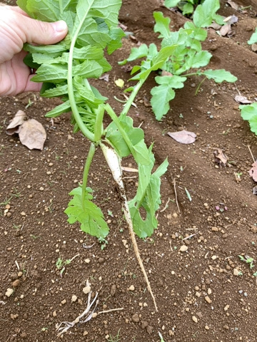 2枚目の写真はあおくび大根の間引きをしたもの。