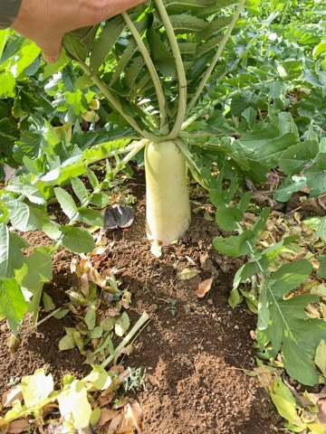 葉っぱもフサフサ生え大根を抜く時はその葉の部分をしっかり掴んで力いっぱい抜きました♪
