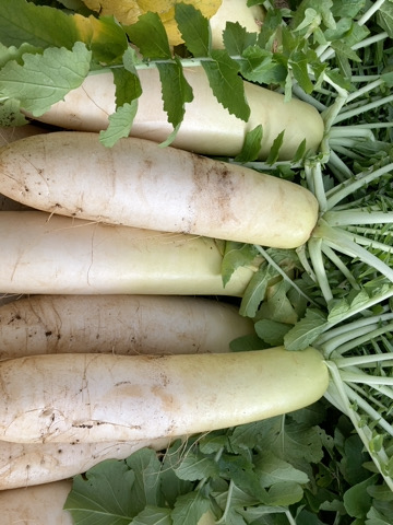 自分たちで抜いた大根は重くて、年長さんでも、「重すぎるーー!」という声が聞こえてきましたが、みんなお持ち帰りの時間になると、一人ひとり大事に持ってお待ち帰りしていました☆