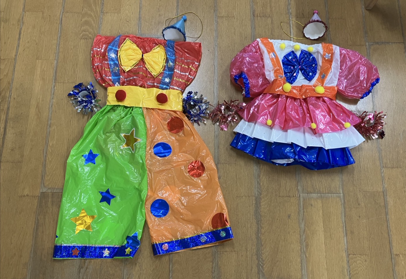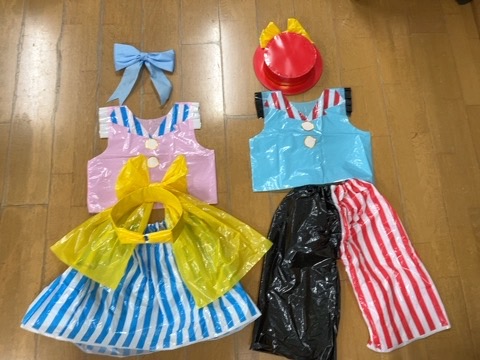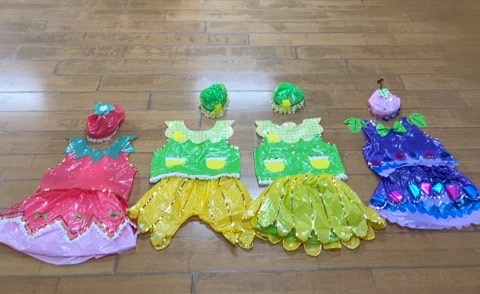 下の写真は、お遊戯にて先生方がコツコツと手作りしてくれた各クラスの衣装になります。どのクラスも可愛い衣装を着て子どもたちは、とても嬉しそうでしたし可愛かったです⭐︎
