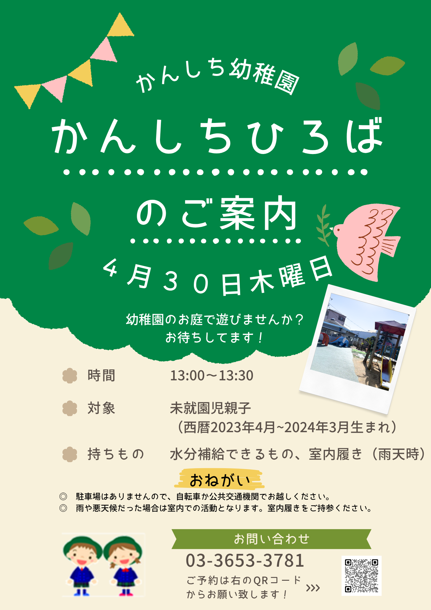 幼稚園のお庭の遊具で遊びませんか?お待ちしてます♪