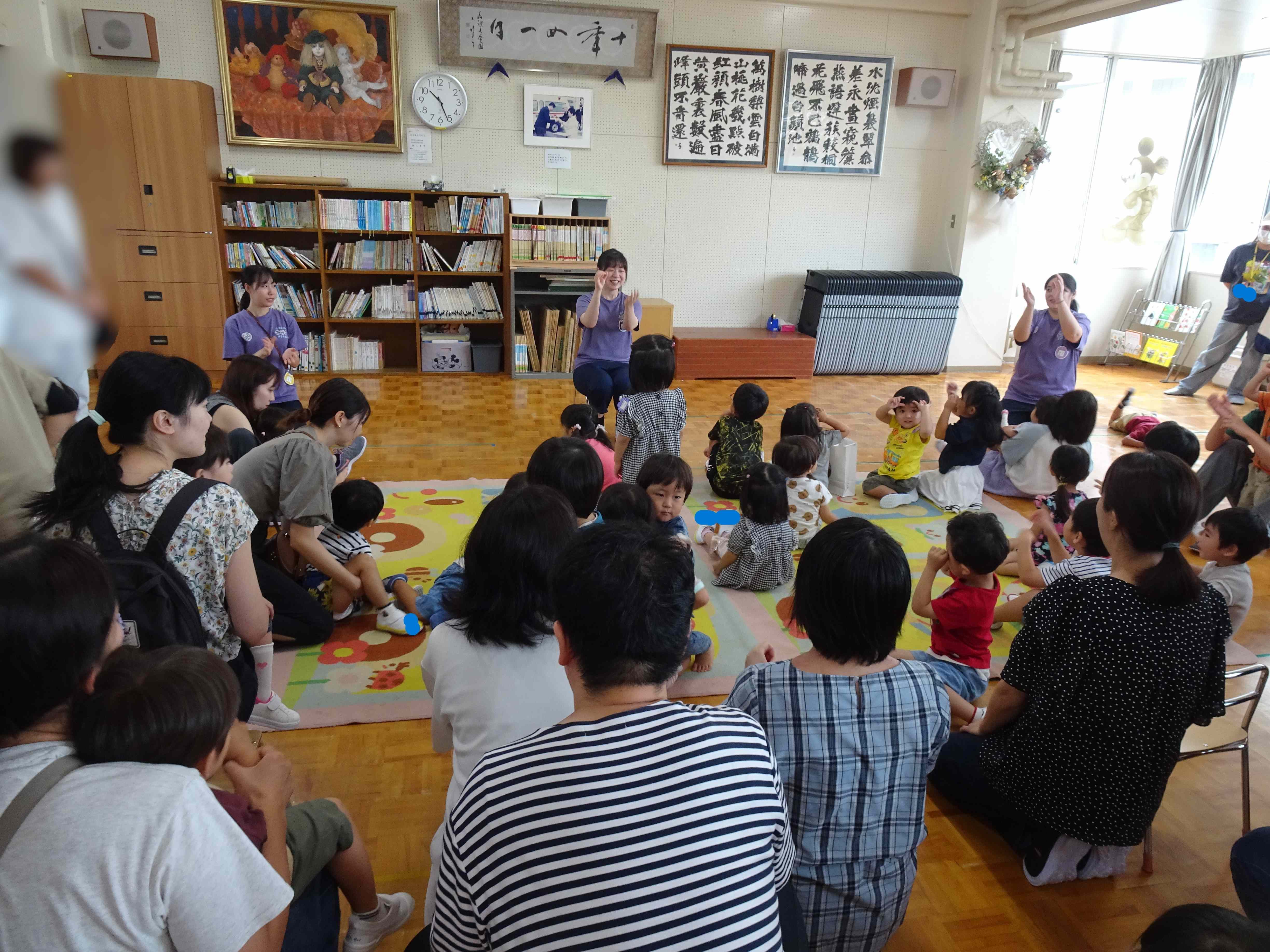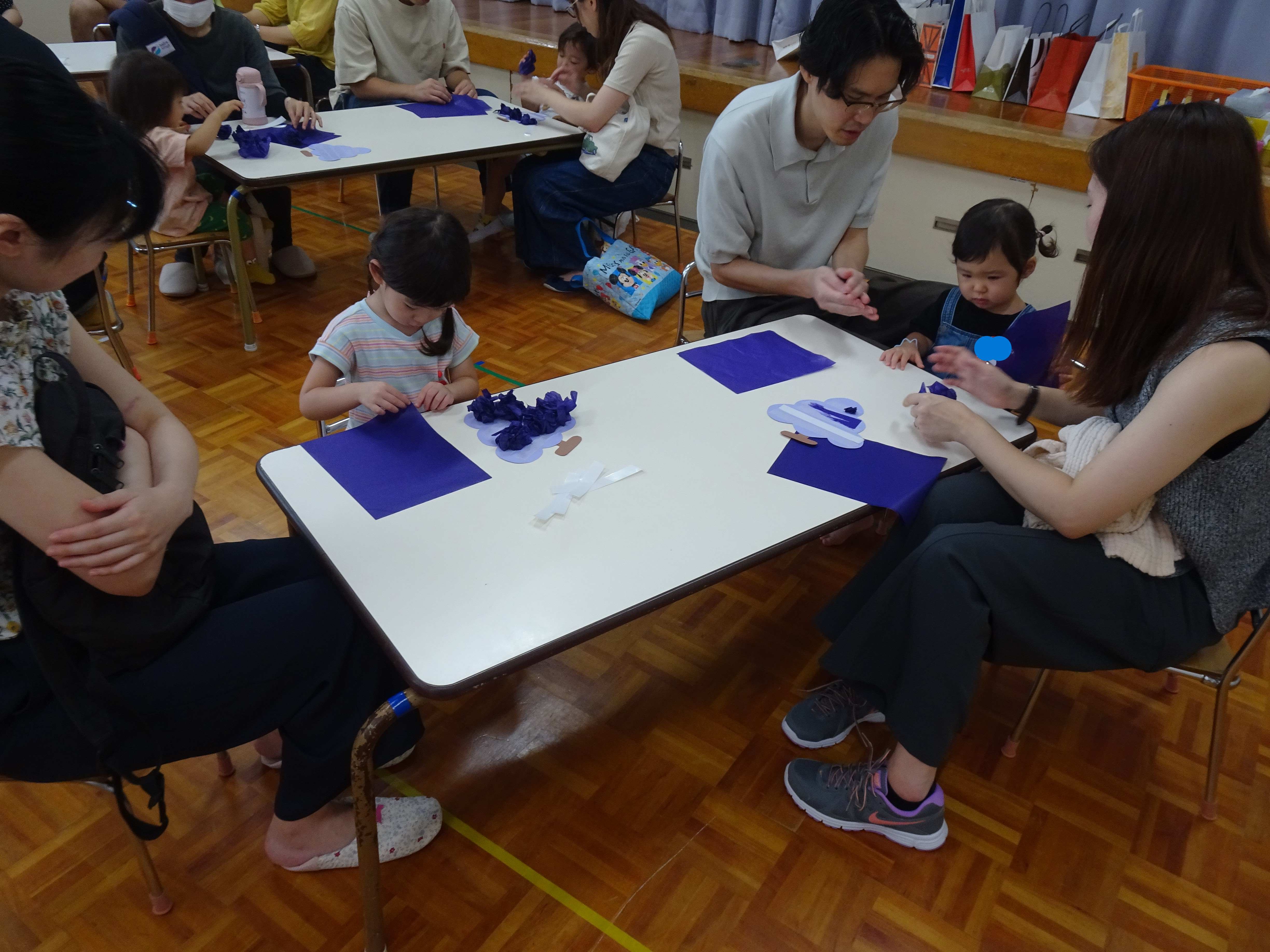 まるめたり、ちぎったりして美味しそうなごちそう作りを楽しんでもらいました。指先を使うことはお子さんの成長にとても重要です。お家でもたくさん遊んでください!最後は手遊びや大型絵本の読み聞かせをしました。喜んで前に出てくる子が多く、先生たちは嬉しかったです。ご参加くださった皆様、ありがとうございました。