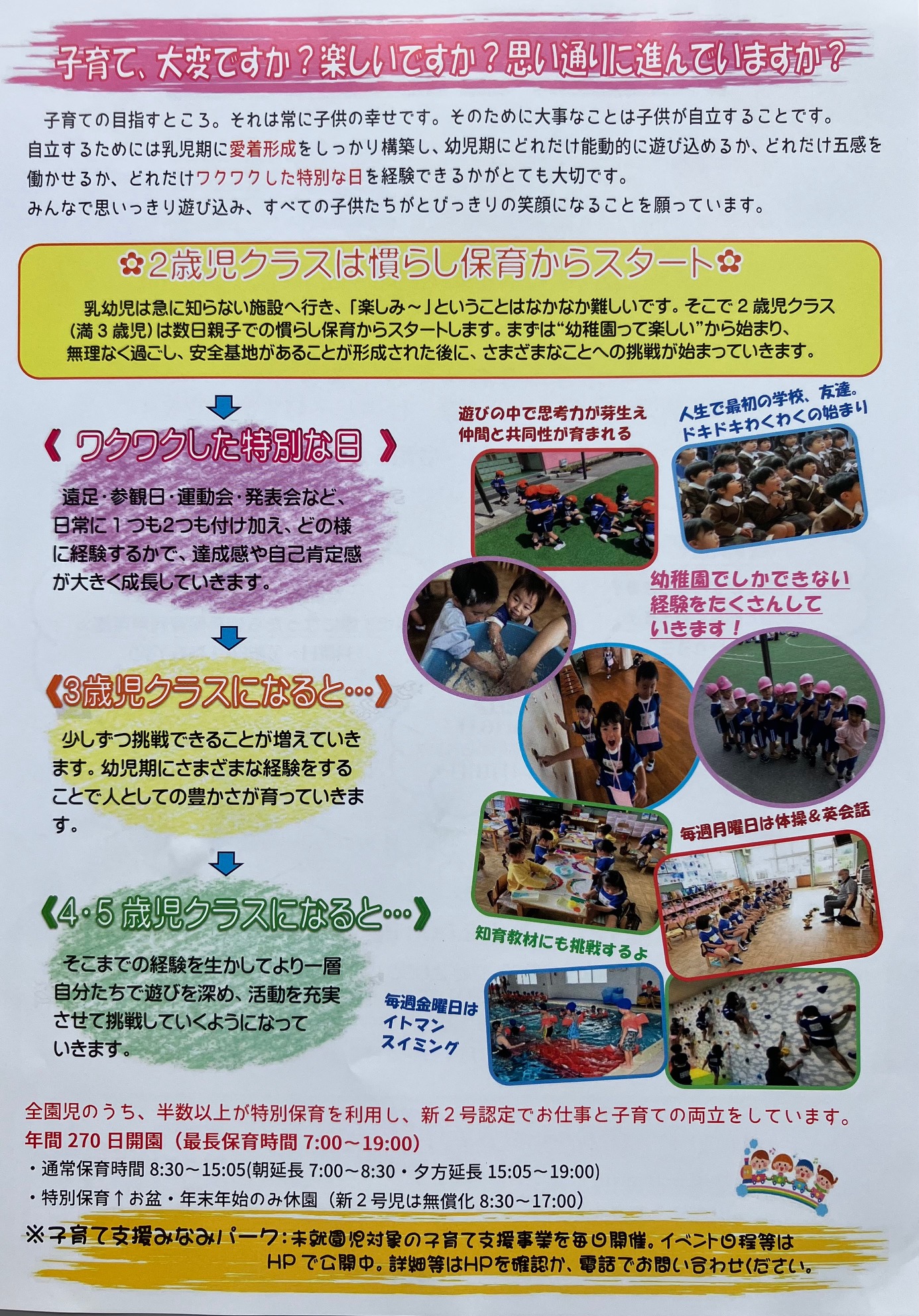 2歳児(R5.4.2〜R6.4.1生まれ)2歳児入園説明会を行います。