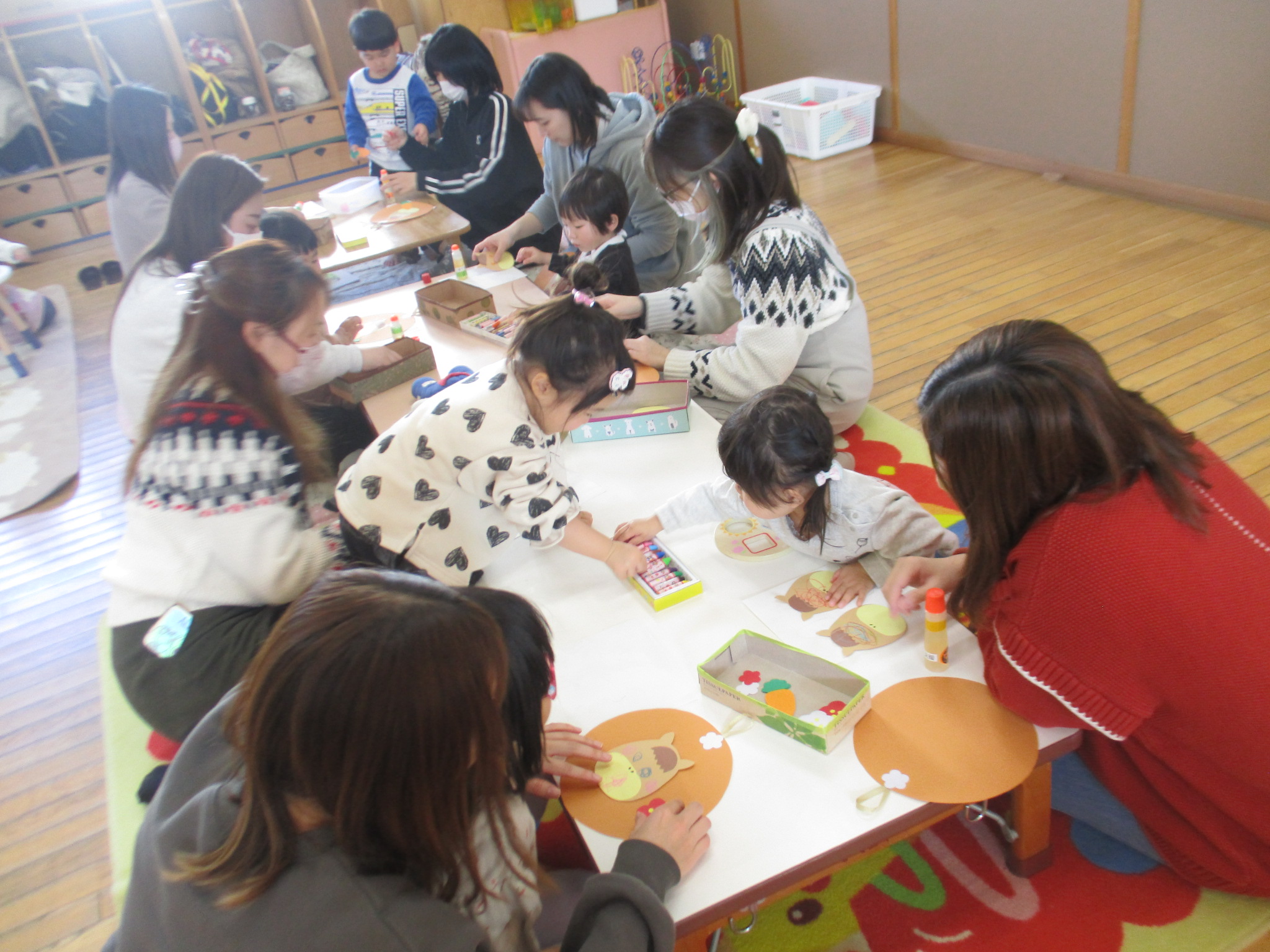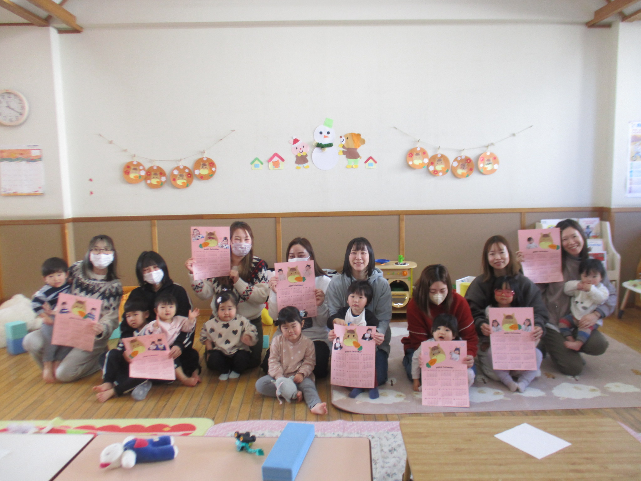 今年初めての「みんなのひろば」で、壁面飾りとカレンダー作りをしました!今年の干支の「うま」を作って、お花を飾ったり、子どもたちの写真を貼って完成です★とってもかわいいカレンダーができました!
