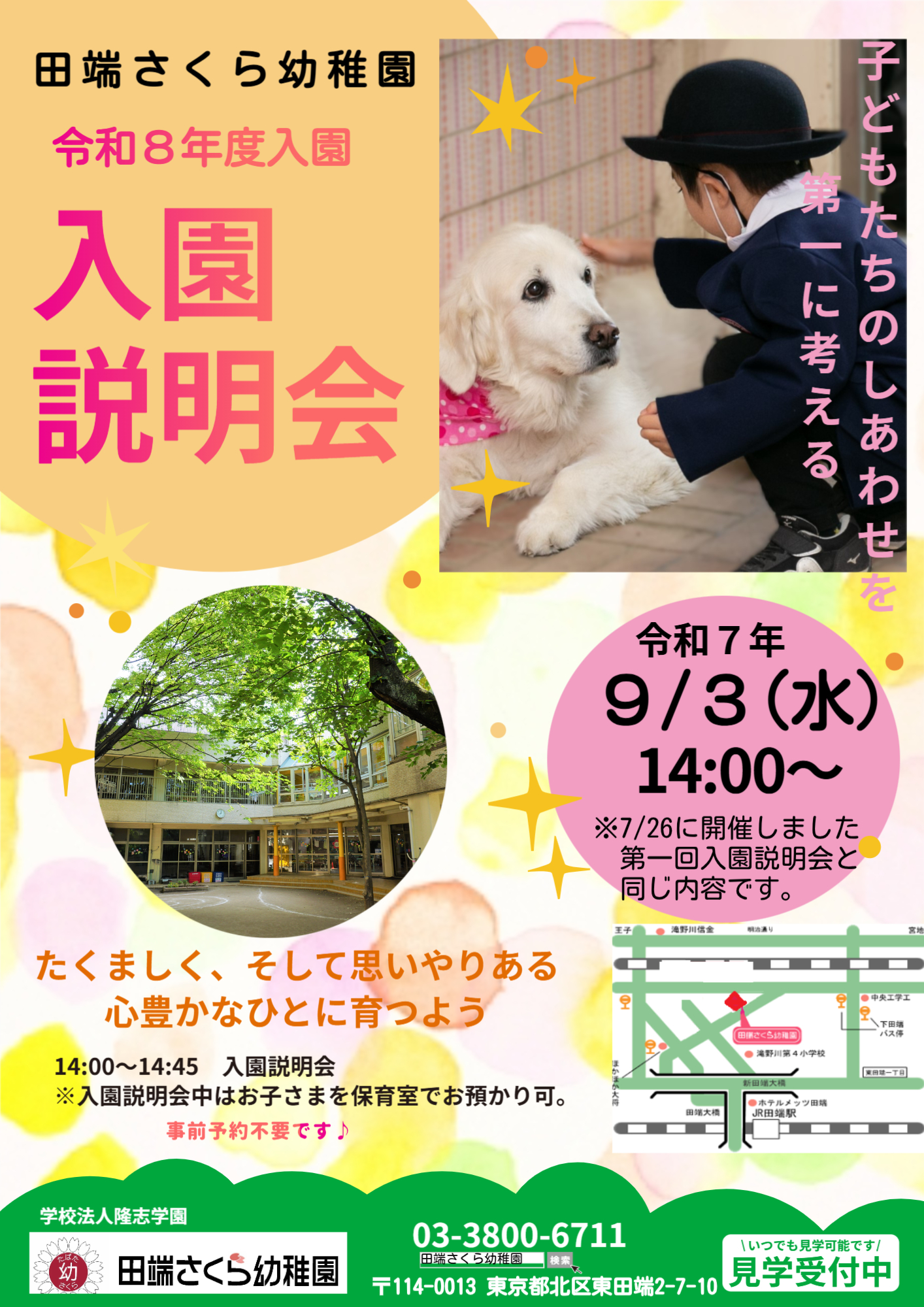 ※第2回入園説明会(9/3水曜日予定)は同じ内容となる予定です。