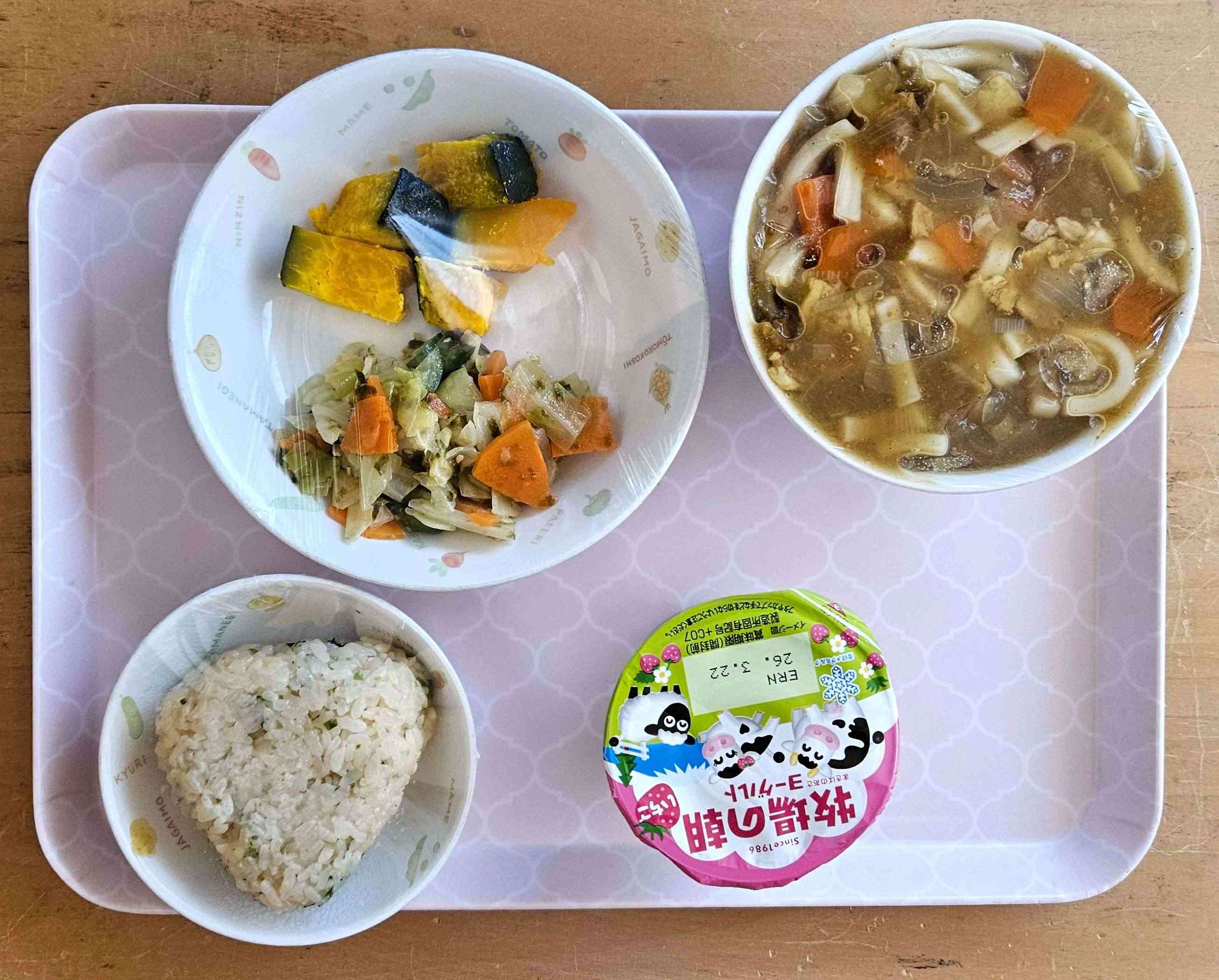 保育者もおにぎり等持参で、一緒にお昼を過ごしました。