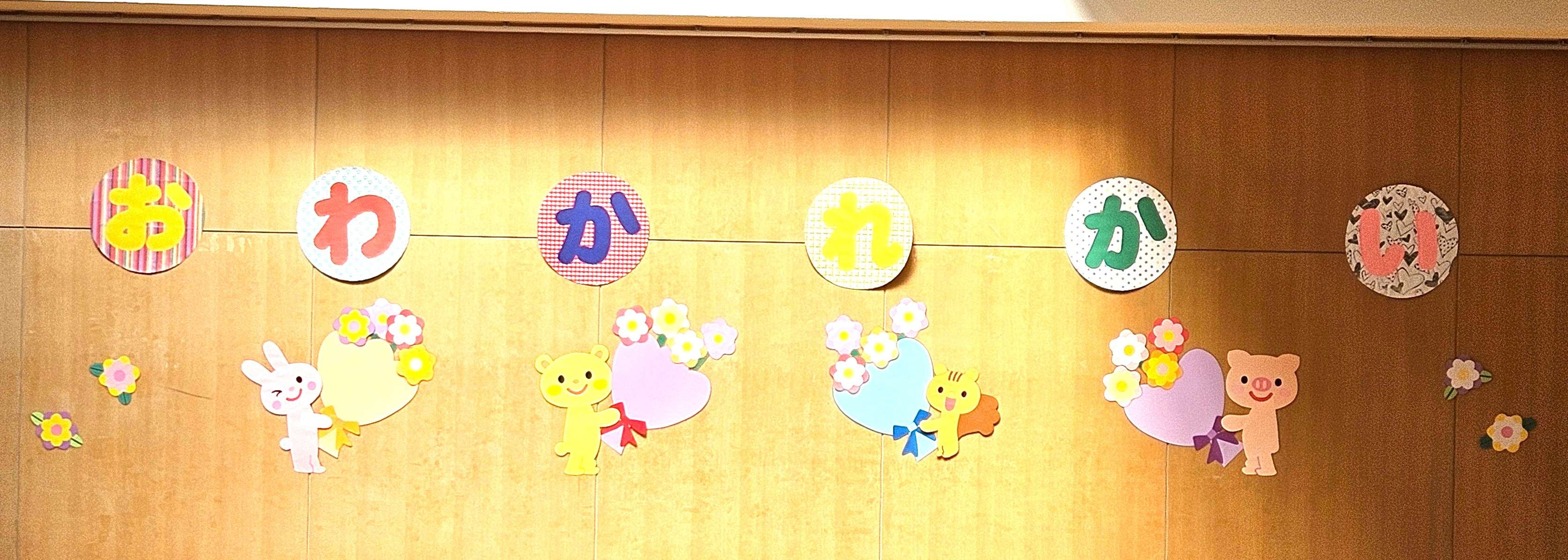 今日は年長組のおわかれ会がありました。きりん組のお友だちと、みんなで行う最後の行事です。