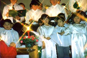 年長さんたちは、教会のお兄さんやコーラスと一緒に清らかなクリスマスキャロルを 賛美し、祝います。