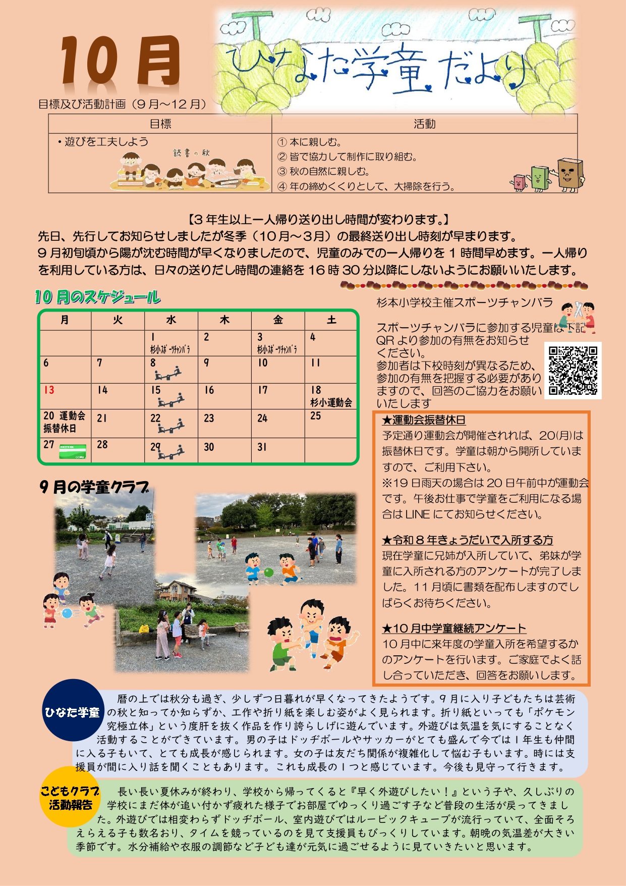 令和8年度 当学童クラブに入所希望の方は9月1日より同ホームページで入所スケジュールをお知らせしますので、ご確認下さい。ひなた学童クラブ