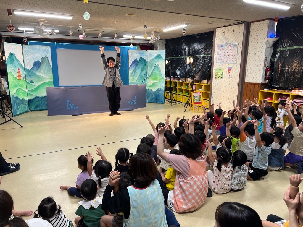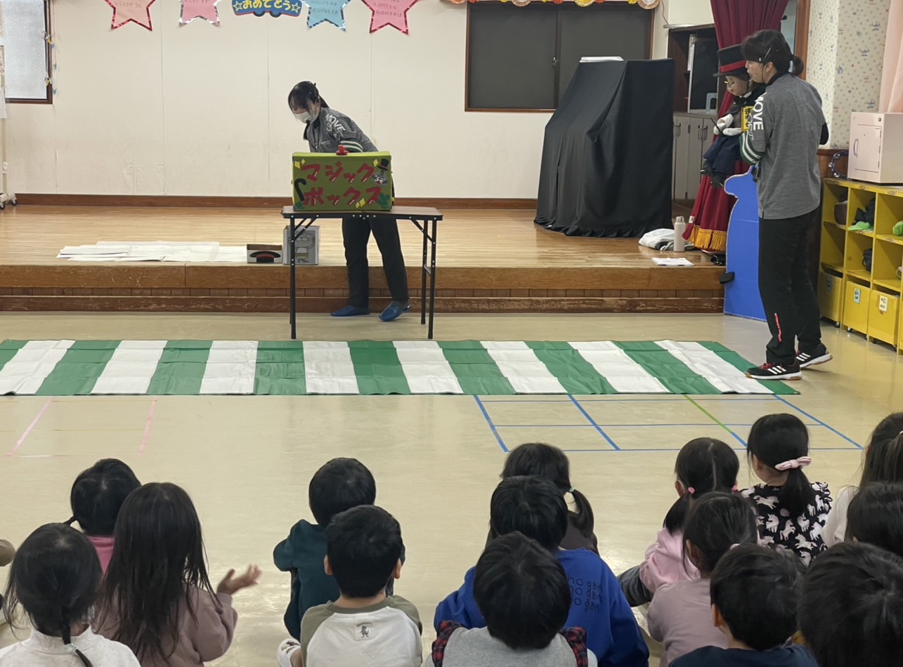 劇団すぎのこさんに来園していただき、人形劇を楽しみました🎶「おおきなかぶ」と「マーリャンとまほうのふで」の2つのお話を聞きましたよ!