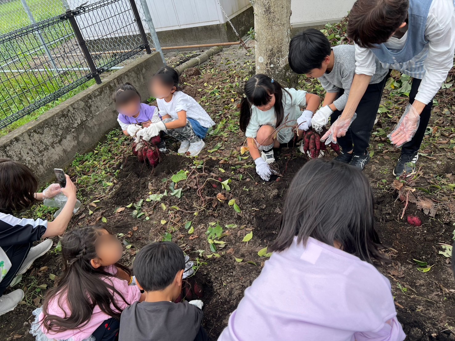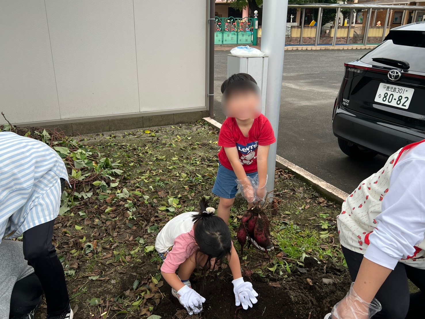 さくら組さんと保育園の畑で育てたお芋の収穫をしました!「大きい芋だね〜!!」と喜びながら、一生懸命掘る姿が微笑ましかったです☺︎