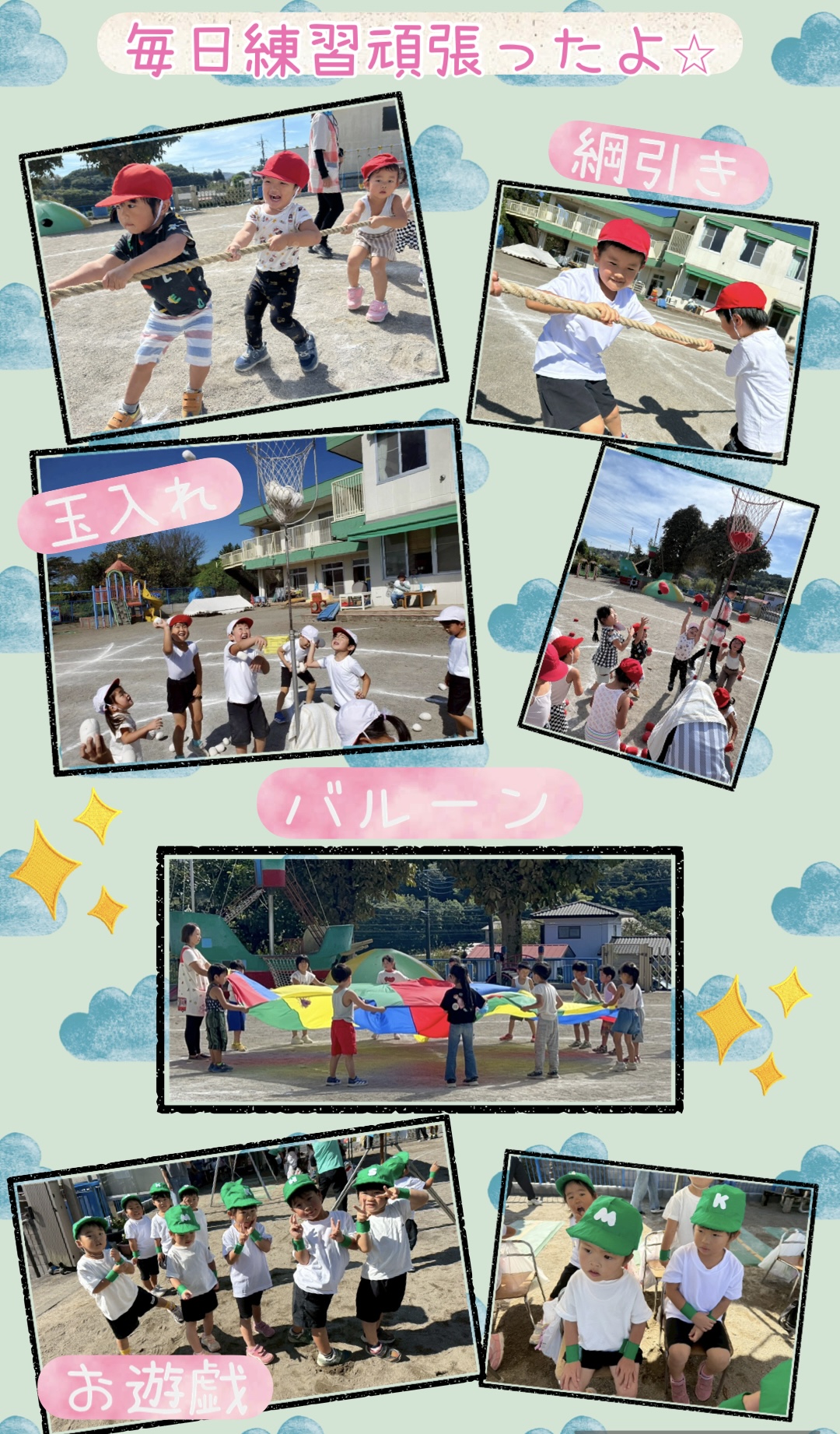 秋晴れの下、運動会が行われました!かけっこや、お遊戯、お友達と力を合わせた団体競技。毎日練習を積み重ねてきた子どもたち。