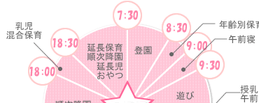 誕生会、避難訓練、月始め集会、身体測定、健康体操、乳児健診 |