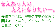 高齢者の日常生活の悩み、不安や疑問に関することなら、どんなことでもご相談下さい。
