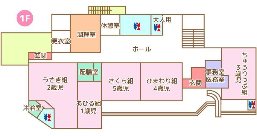 あひる組(1歳児) うさぎ組(2歳児) ちゅうりっぷ組(3歳児)