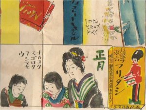 ひょっとこやおかめなどの輪郭を描いた紙に、目隠しをして口、鼻、眉などを貼っていき、とんでもない顔にできあがるので、それをみんなで大笑いする遊びです。新年早々に、笑いがこぼれるというのでめでたいといわれ、江戸時代から老若男女を問わずに楽しめる遊びとして受け継がれています。 |