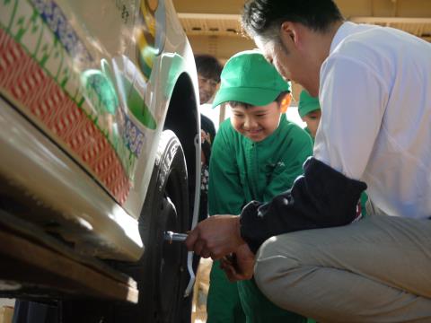 さくら組の子どもたちは、青森トヨペット黒石店へキッズエンジニア体験をしてきました。タイヤ交換や空気圧点検等の作業を実際に体験し、楽しむ姿がありました。