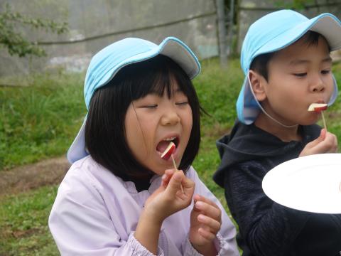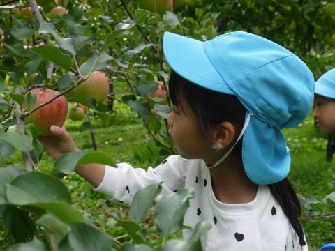 さくら組の子どもたちはりんご収穫体験へ行ってきました。たくさん実った中から「どれにしようかな」「あかいのがいいよね」と悩みに悩んで「これにする!」と収穫。りんごの試食もすることができ、楽しい思い出になりましたね!