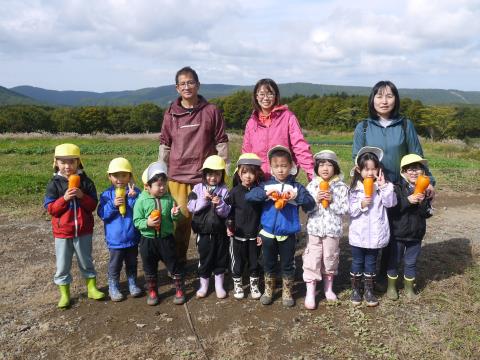 ゆり組の子どもたちは、にんじん収穫体験へ行ってきました! 山で育った人参はすごく立派で、なかなか土の中から引っこ抜くことができずに大苦戦。しりもちをつきながらもたくさん収穫することができました。