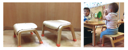 | 背もたれの無いイス | 自分の腹筋・背筋を使ってすわる習慣を身につけます。 子どもたちの発達を考え、年齢に応じてイスを導入しています。 ![]() |