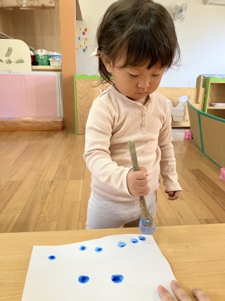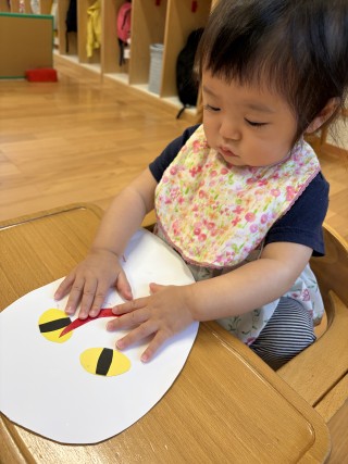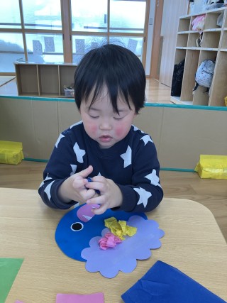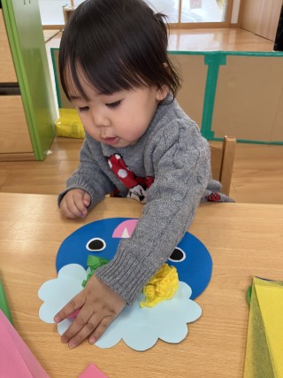 春や夏の頃は手が汚れるのが嫌で、初めての物に緊張してしまう子もいましたが、「やるやる!」と楽しく製作する姿が見られ、成長を喜んでいます💚
