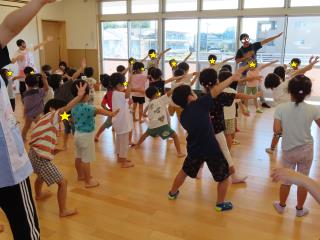 運動会に向けて少しずつ練習をしています。今日は幼児クラスでホールに集まり、運動会で行なう準備体操をしたり、4,5才児クラスのお遊戯の練習をしました。