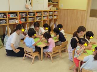 6月より行なっている乳児クラスの「保育参加」 本日も2才児クラスに保護者の方が参加しました。雨の為、室内で過ごしていましたが、自分の子どもの様子を見るだけでなく、他の子にも声を掛けたり遊んでくれたりとすっかり保育士さんのようでした。