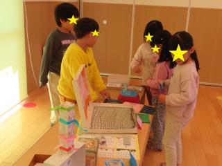 5才児年長児クラスが、お店屋さんごっこをしました。お店屋さん、お客さんを順番に行ない、「お化け屋敷」や「ゲーム屋さん」など4つのお店を楽しんでいました。