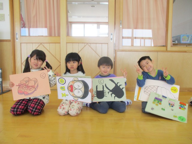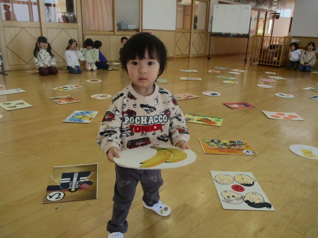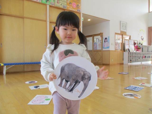 や動物のかるたを使います。3才以上児は、