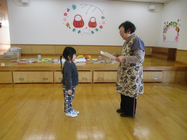 とあり、園長先生から賞状を受け取りました。