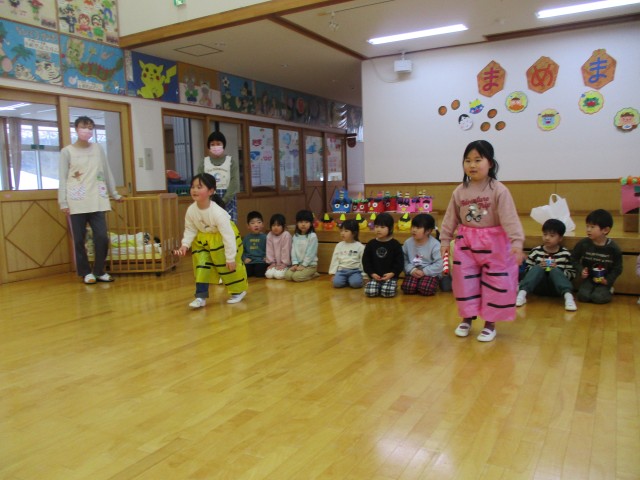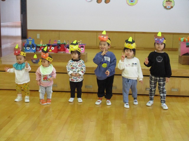 2月3日(火) 豆まき会を行いました。それぞれに、ゲームを行いピンク鬼さんチーム