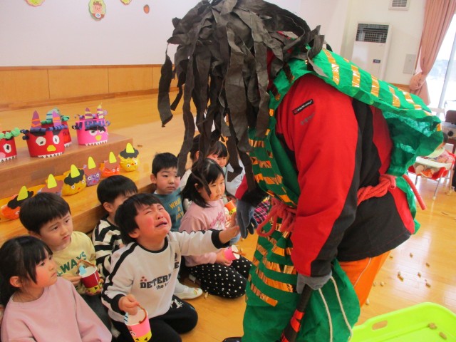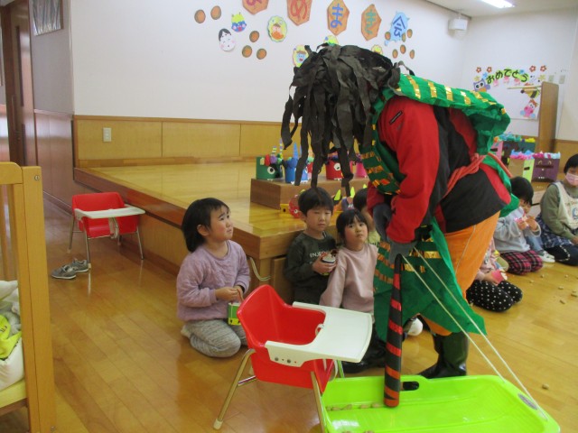 全員が、豆をゲットした所で、鬼さん登場