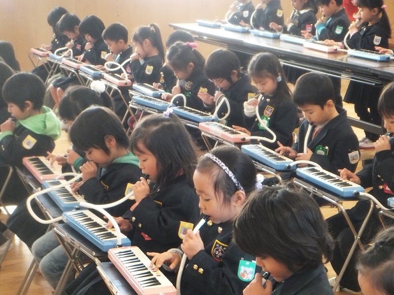 【音楽】 いろいろな合奏や合唱を楽しみます。また、ピアニカは卒園するまでに全員が演奏できるようにしています。