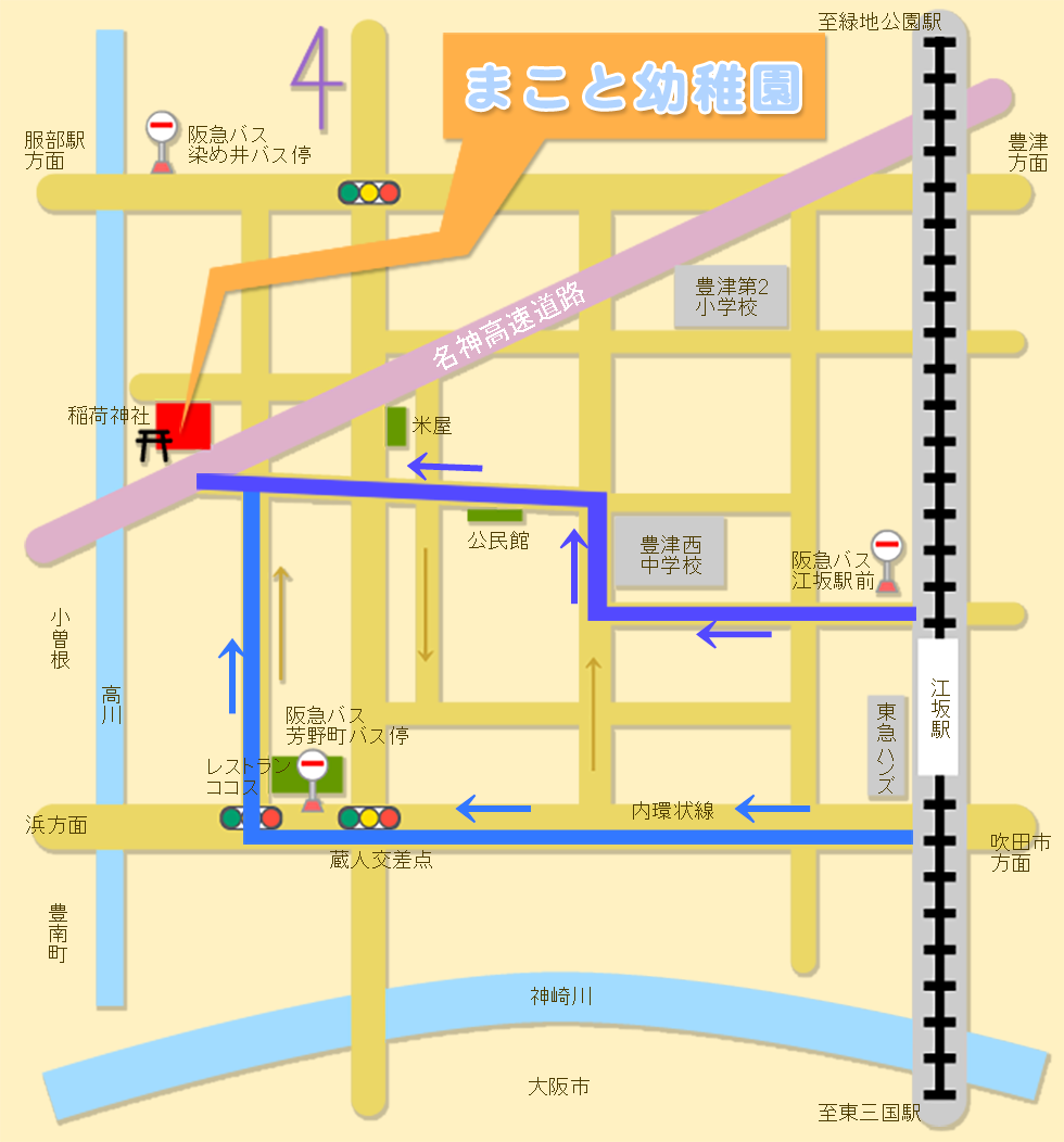 阪急バス「芳野町」バス停より 北へ徒歩5分
