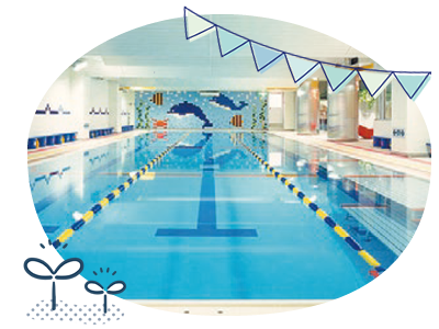 3歳、4 歳、5 歳児は、宮山台幼稚園の温水プールにて年間を通じて水泳教室を行います。