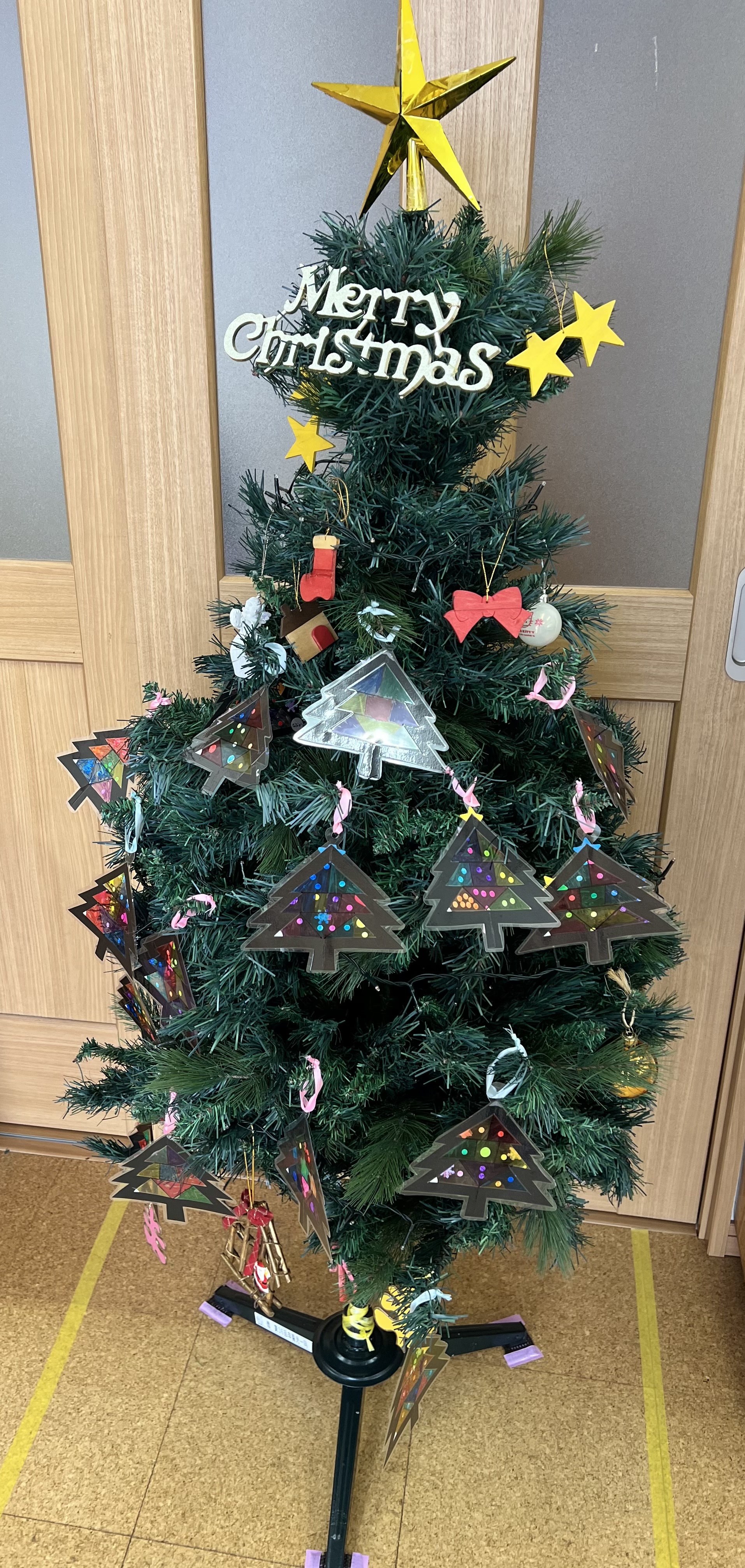 12月になり園内もすっかりクリスマス仕様になりました。年長児さんが飾り付けをしてくれたクリスマスツリーを見てお友だちは「早くサンタさん来ないかな〜」と待ち遠しそうです✨