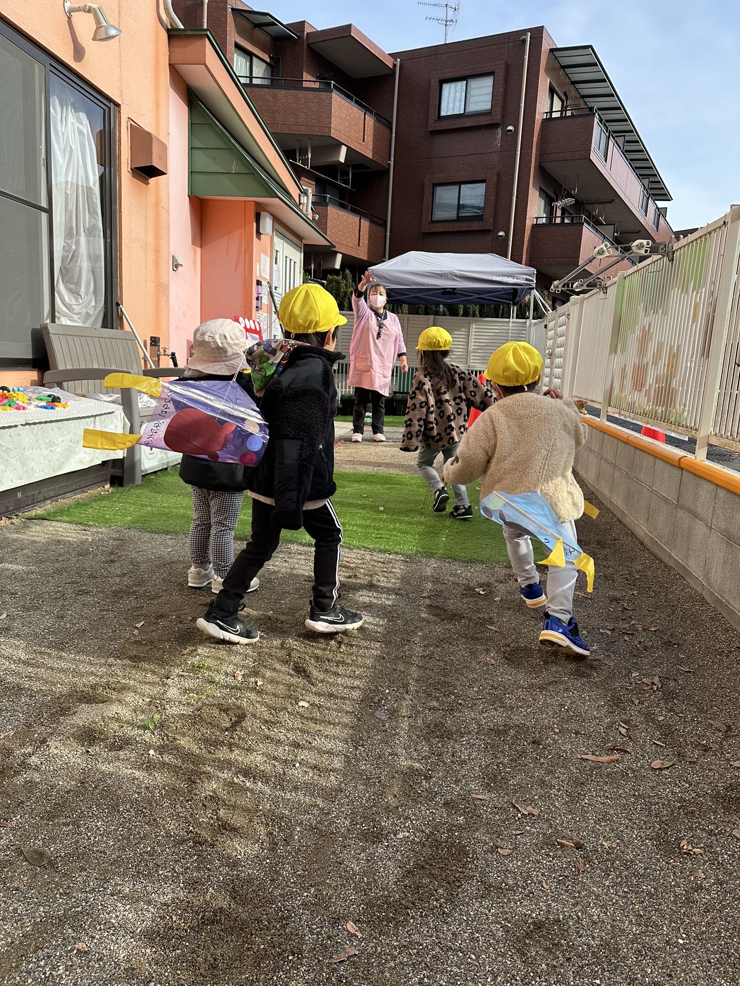 今年もよろしくお願い致します!連休明けでしたが、元気に笑顔で登園する姿が見られました🌟凧の製作を見せると「凧揚げしたい!」と言う声があがり、園庭で凧揚げの練習を楽しくしています🪁