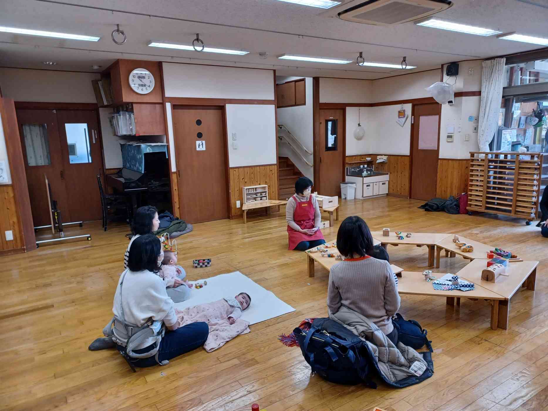 お母さん同士の会話も弾みながら、木のおもちゃに囲まれたひとときはほっこりタイムになっていました。